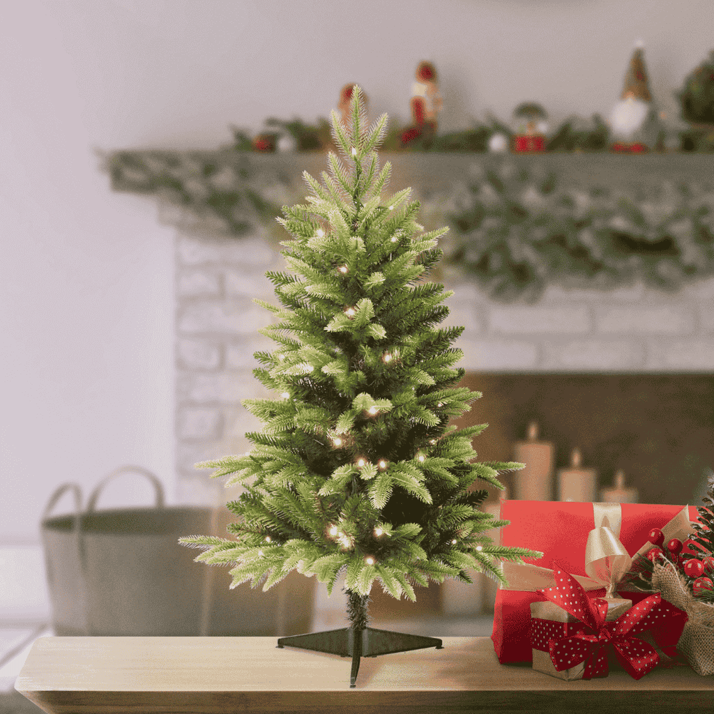 Create a cosy festive focal point in smaller spaces with this 3ft Pre-Lit Parque Green Artificial Christmas Tree from Puleo. Pre-strung with 50 warm white LED lights and crafted with a realistic PE & PVC branch tip mix, it offers a full, lifelike look without the hassle. With 278 branch tips and a plastic stand included, it’s quick to set up, easy to style, and perfect for hallways, apartments, desks, and secondary display spots.