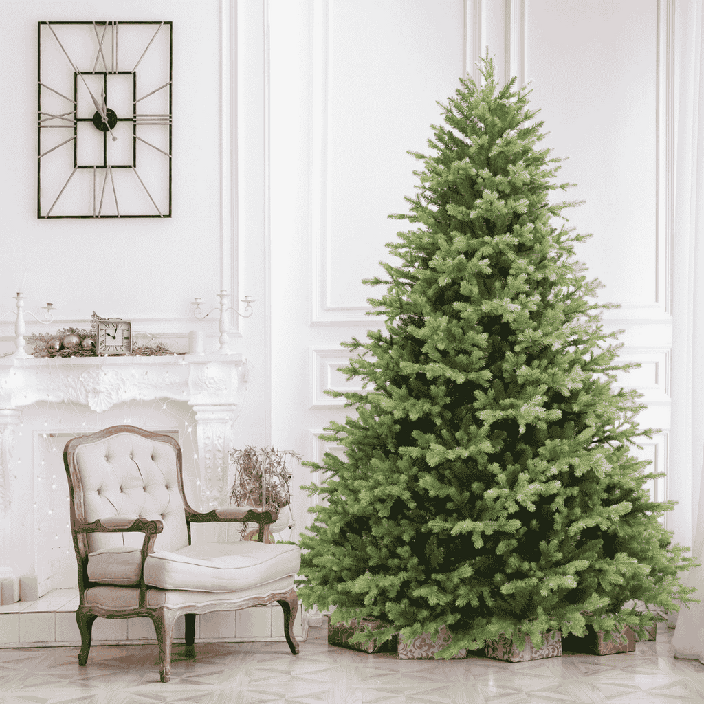 With 8,732 branch tips, this tree offers exceptional fullness and a true-to-nature silhouette. The hinged branch design allows for quick, stress-free assembly, while the robust metal stand ensures your tree remains stable throughout the season. Perfect for decorating with traditional baubles, ribbons, and twinkling lights.