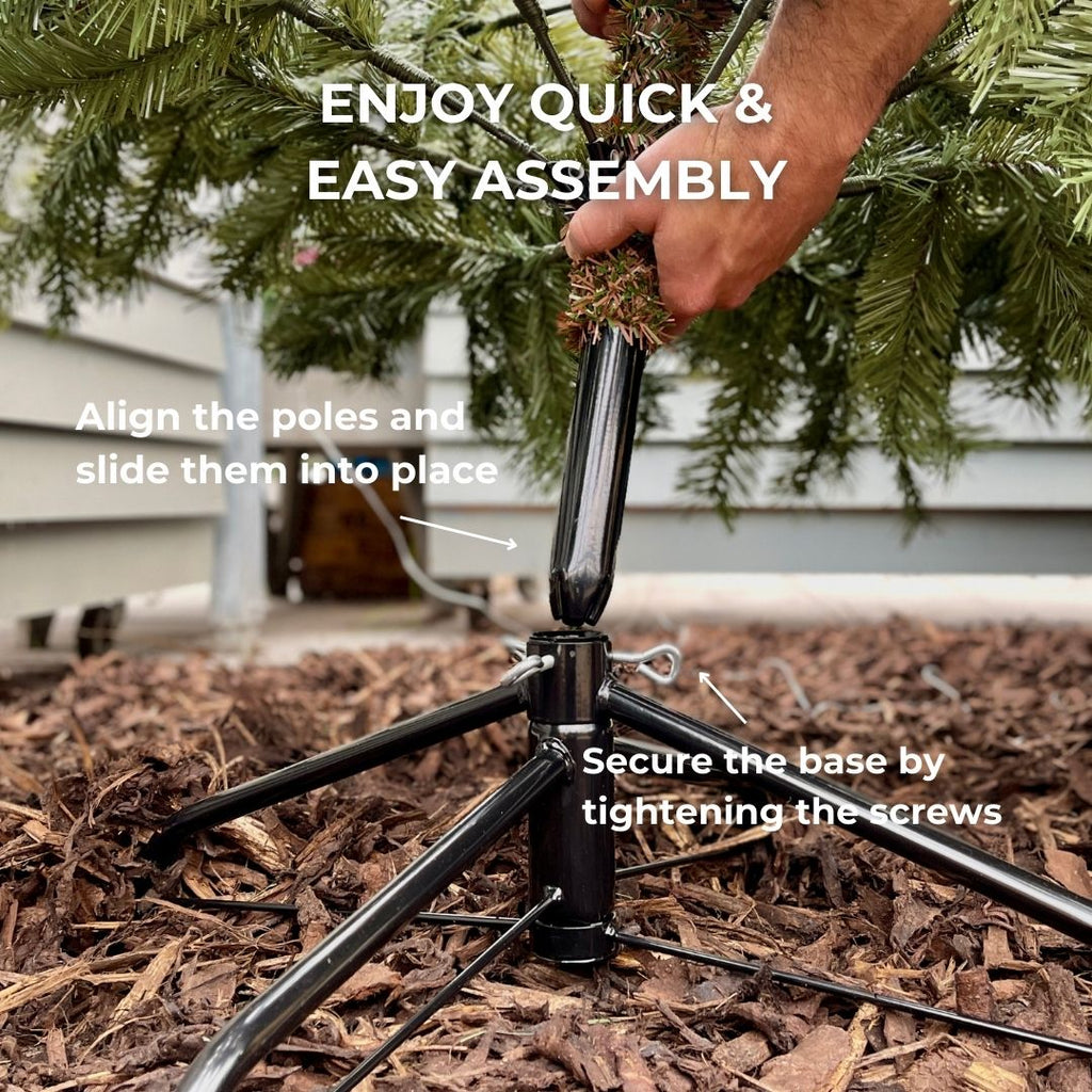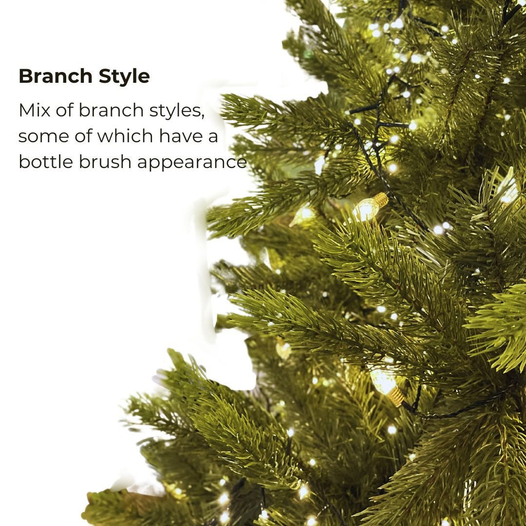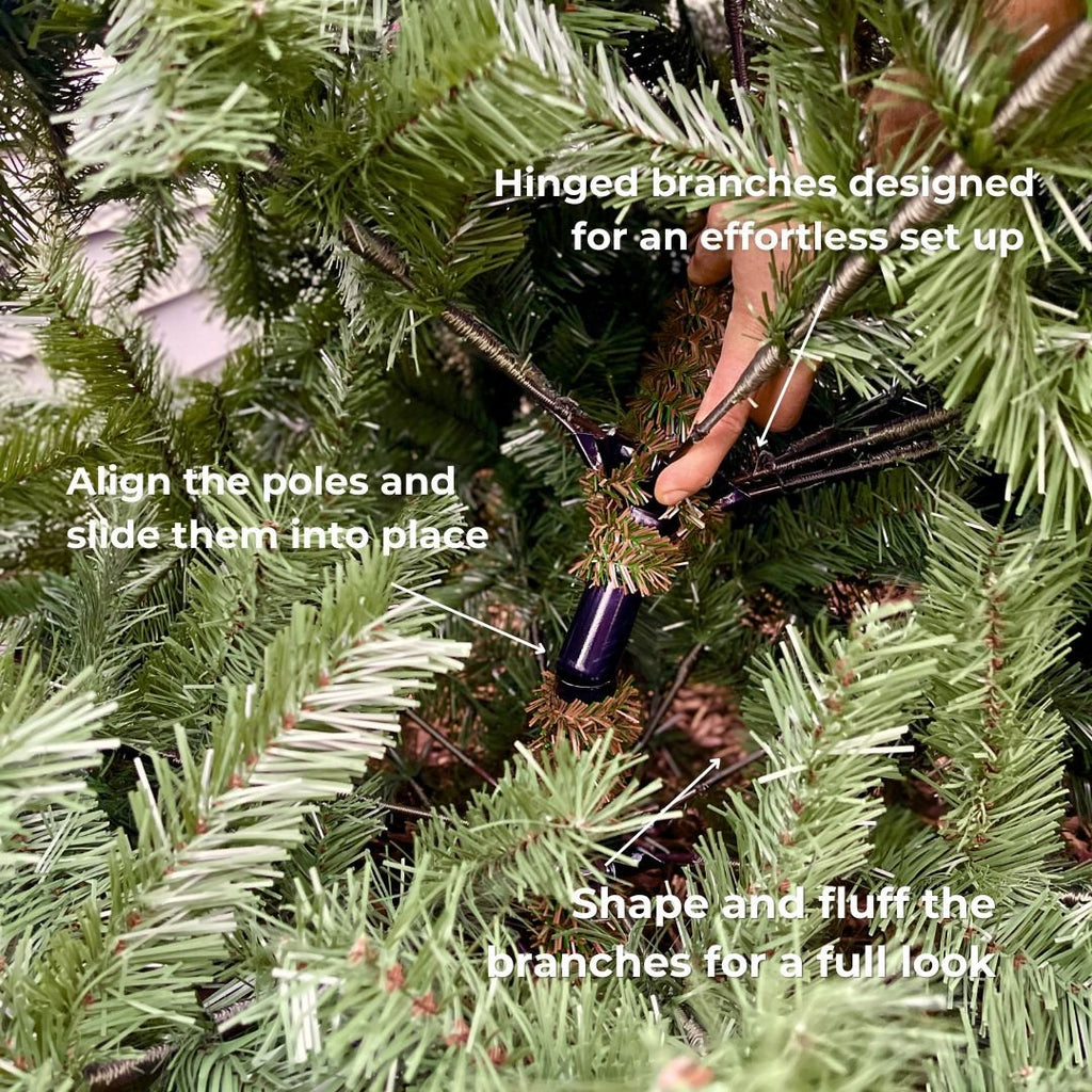With hinged branches for quick and easy setup and a sturdy stand included, this tree is as practical as it is beautiful. Crafted with 3,416 branch tips, it provides ample space for decorations while maintaining a natural fullness.
