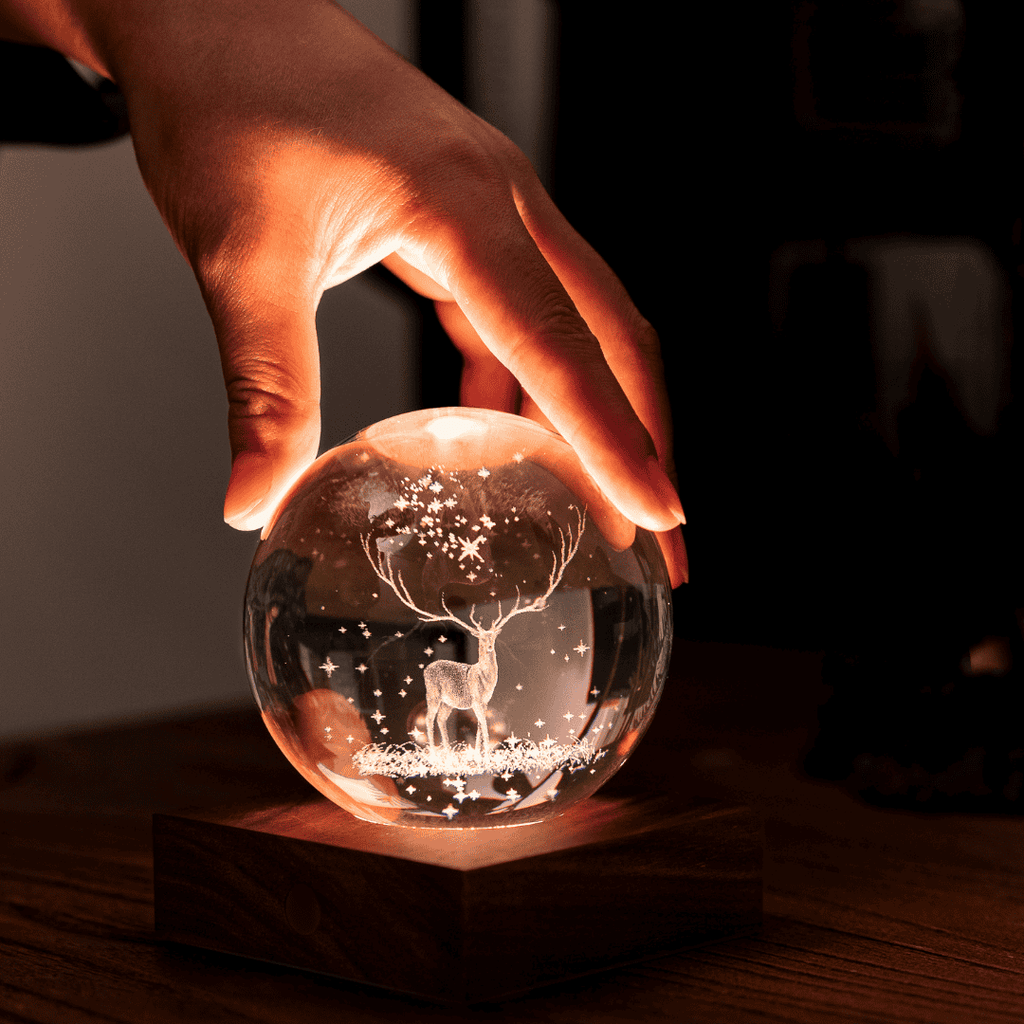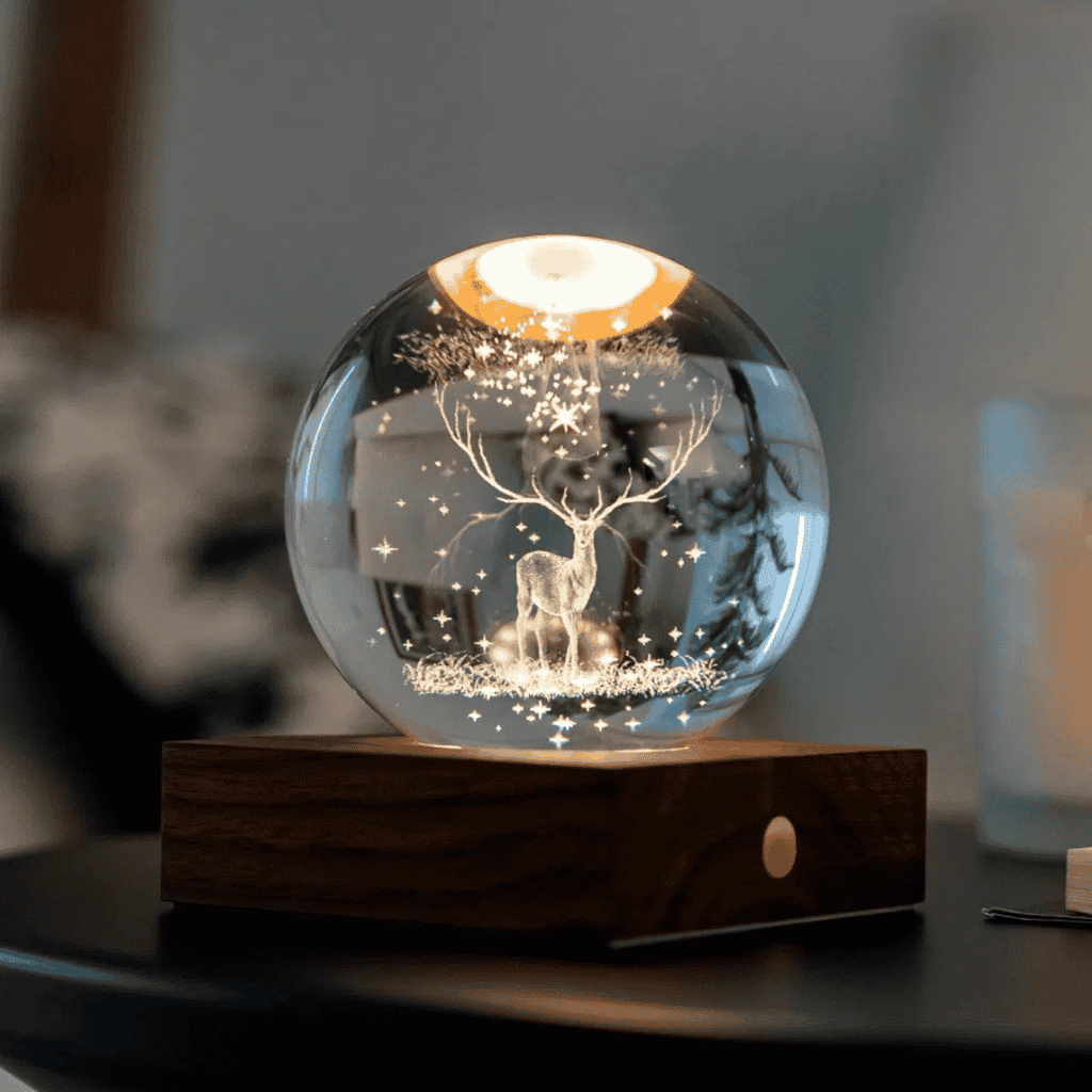 Bring the beauty of nature indoors with the Amber Crystal Light, featuring a majestic stag surrounded by intricate woodland detail. This decorative crystal lamp combines craftsmanship and serenity, creating a striking focal point in any room.
