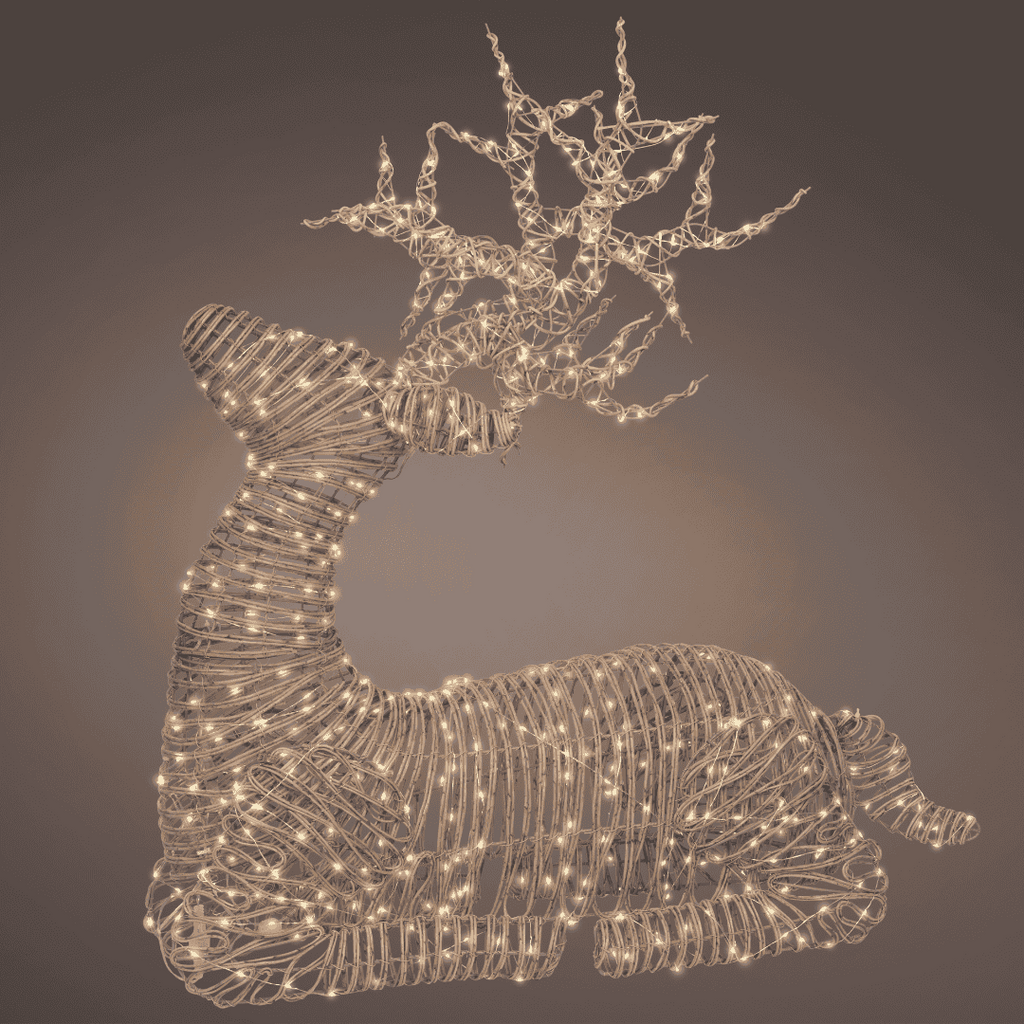 Bring festive sparkle to your home and garden with this stunning Christmas Wicker Reindeer Decoration. Crafted with care and beautifully illuminated by 630 warm white micro LEDs, this elegant lying reindeer adds a soft, magical glow to your seasonal display.