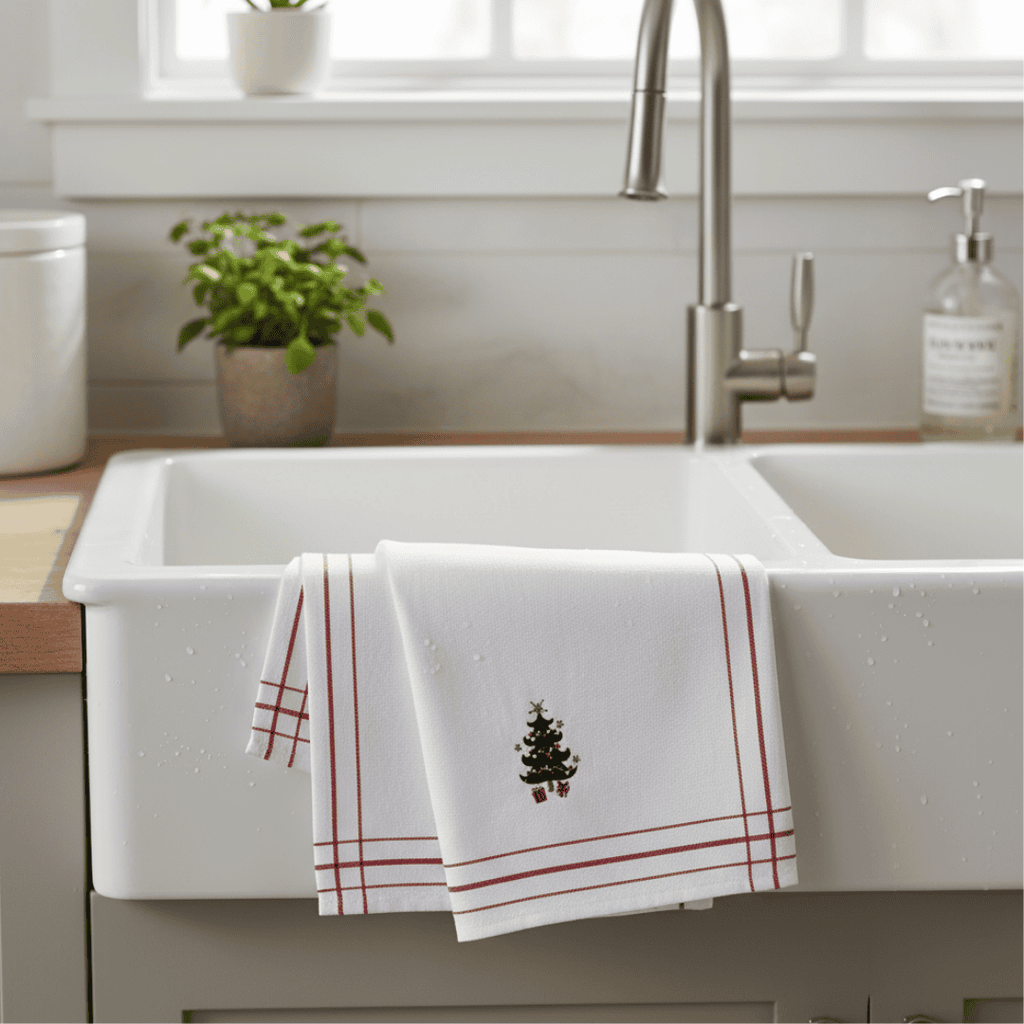 Perfect for seasonal entertaining or as a thoughtful gift, this versatile tea towel combines style and practicality, making it a must-have for the holiday season.