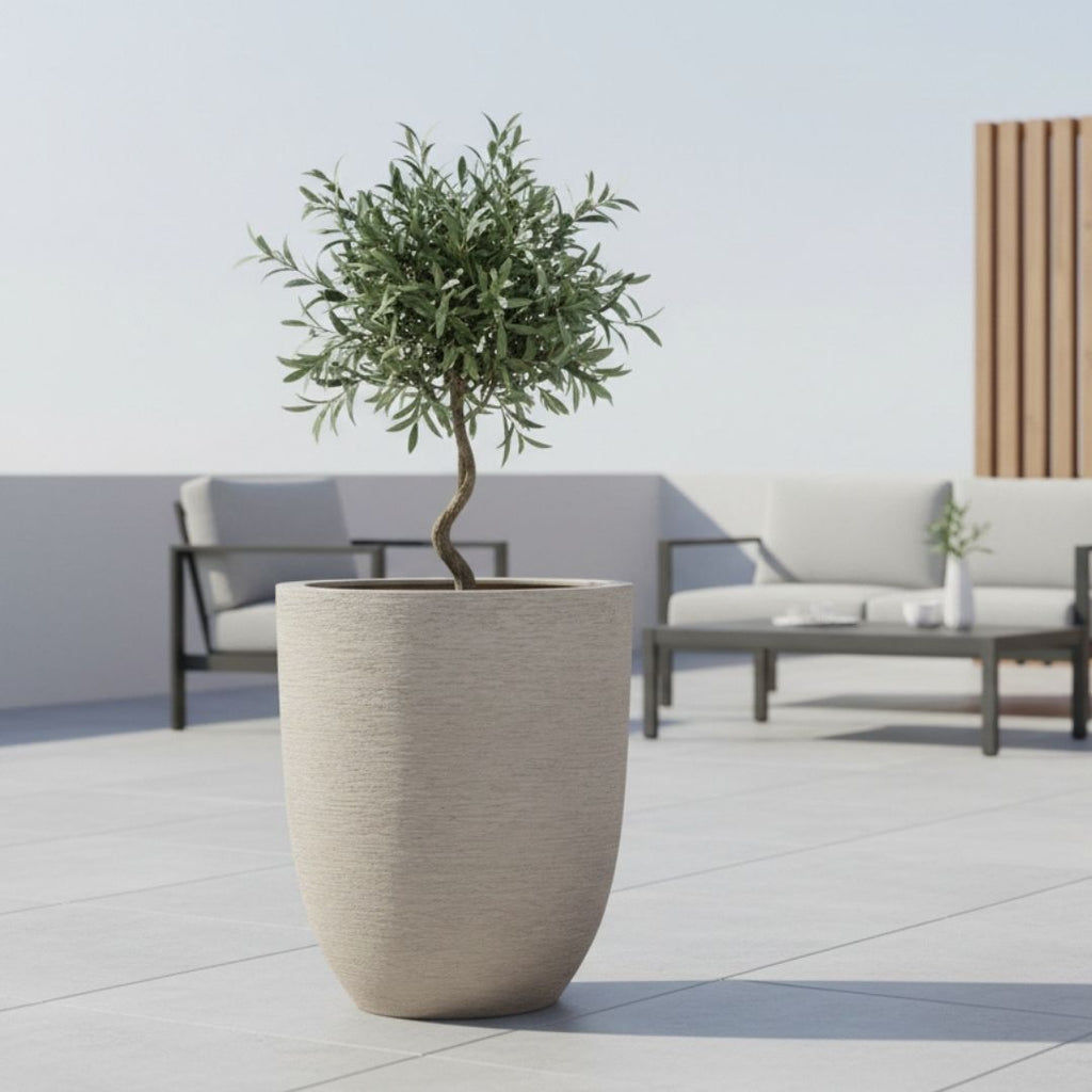 Bring a clean, contemporary finish to your outdoor space with the Eschbach Tall Egg Pot – Sabbia. Designed with a refined textured surface and elegant curved silhouette, this premium planter complements patios, terraces and garden landscapes with effortless style.