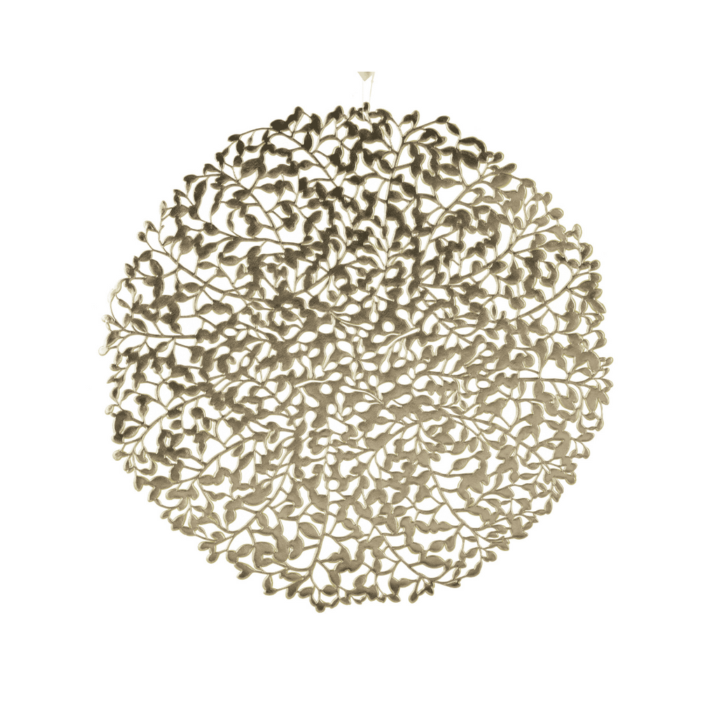 Create a festive table setting that impresses guests with this stylish gold placemat, combining practicality with seasonal elegance.