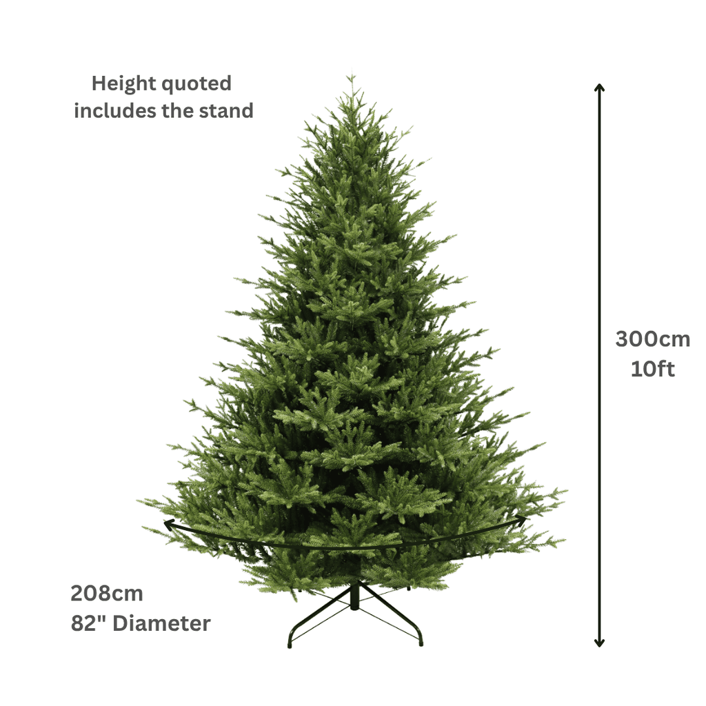 Height: 10ft (300cm), including sturdy stand. Diameter: 208cm (82")