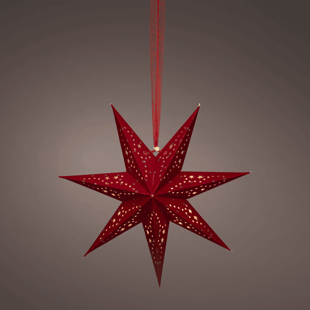 Create a magical festive display with this stunning red LED Christmas star. Designed in high-quality paper with a warm white glow, this illuminated star makes a striking focal point when hung in a window, on a mirror, or as part of your seasonal décor.