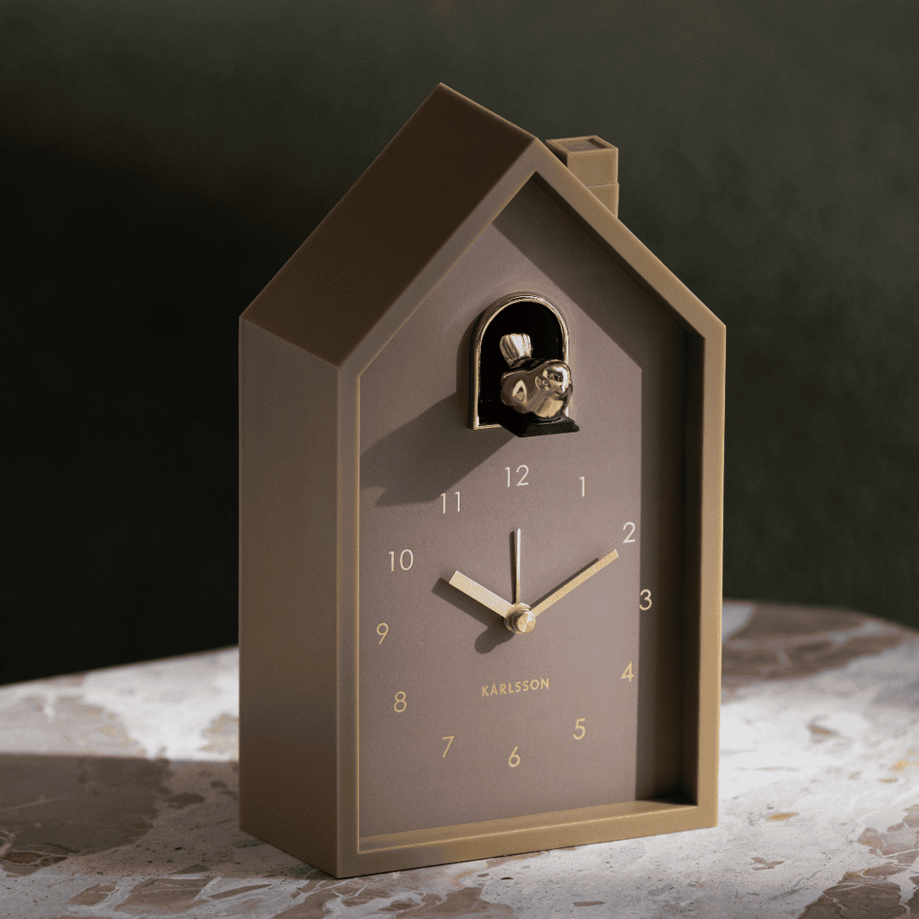 Featuring a gold-coloured cuckoo bird, this Karlsson timepiece brings a charming twist to your morning routine. When the alarm sounds, the bird chirps gently, ensuring you start your day on time and with a smile. Crafted from durable ABS plastic in a rich mocha brown finish, this stylish alarm clock blends seamlessly into any interior setting.