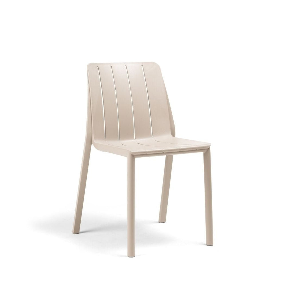 The Tiberina bistro chairs feature a beautifully slatted design with rounded lines and circular legs, ensuring a relaxing and stylish seating experience.