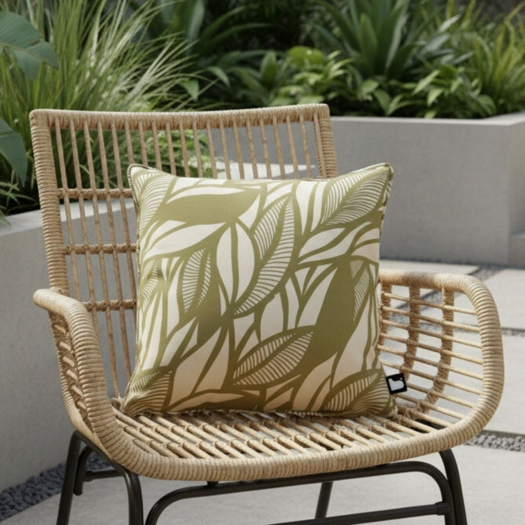 Update your outdoor seating with the B Outdoor Cushion Poplar Leaf – Pistachio, a 43x43cm waterproof outdoor cushion featuring a bold leaf design. Created for patios, decking, balconies and conservatories, this decorative garden cushion blends statement design with practical durability.