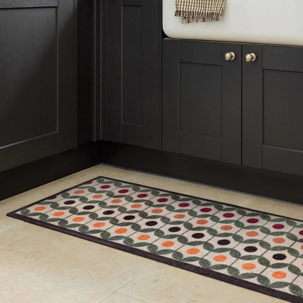 Protect your floors in style with the Retro Geo Earth Runner Rug, a durable and highly absorbent indoor runner designed for busy, high-traffic areas. Featuring a bold geometric pattern inspired by retro design, this washable non-slip runner rug delivers both visual impact and reliable everyday performance.