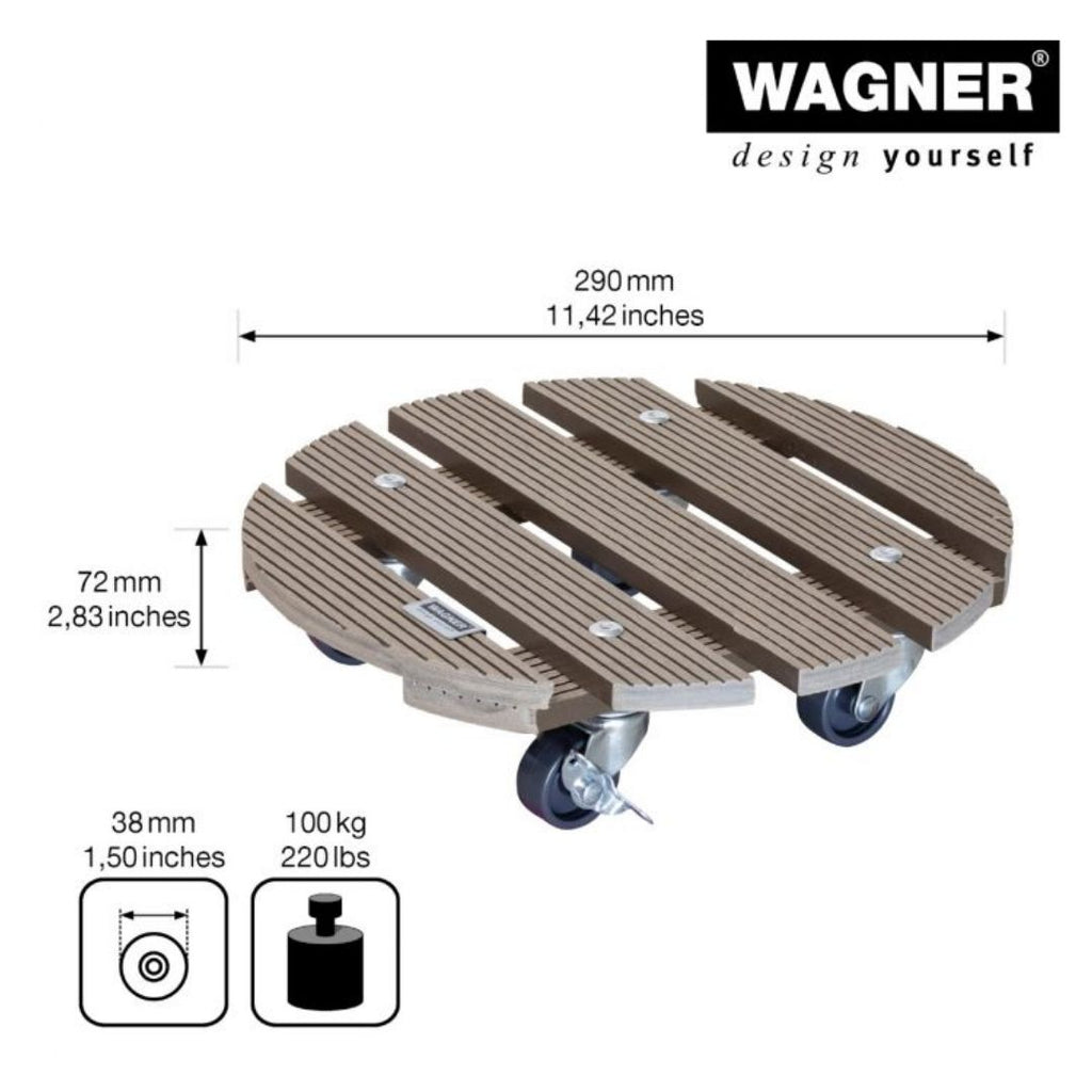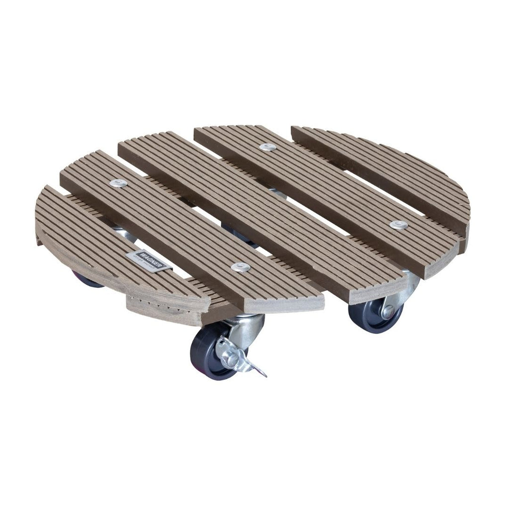 Weatherproof Round Plant Trolley Indoor/Outdoor – 100kg Heavy Duty WPC Plant Caddy with Lockable Wheels