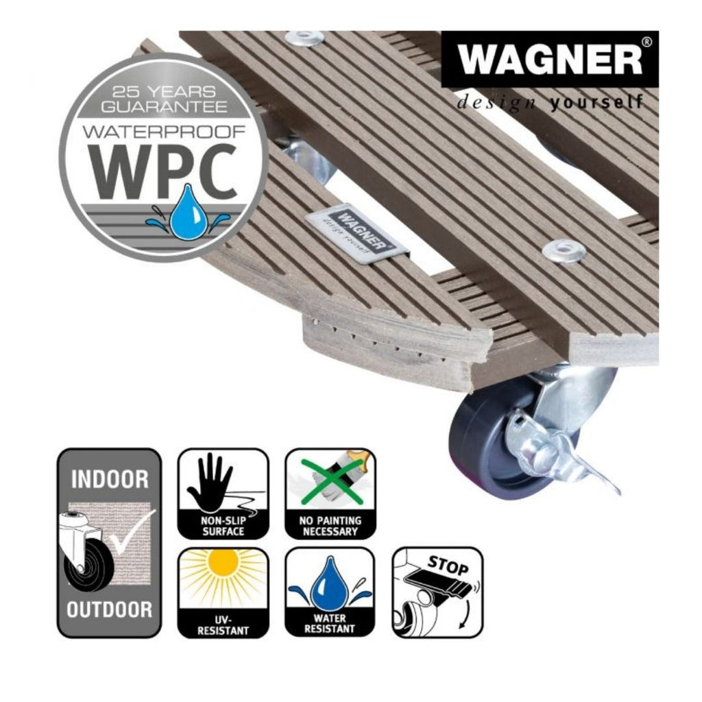 With an impressive 100 kg load capacity, this plant trolley with wheels is ideal for medium to large plant containers. The sturdy WPC platform is engineered to resist moisture and wear, making it suitable for year-round use.
