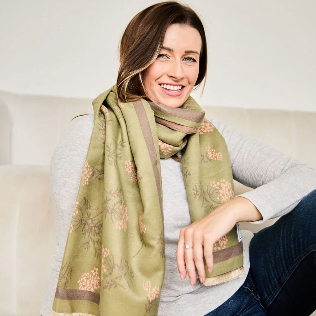 Add a touch of timeless style to your wardrobe with the Winter Scarf Olive & Dusty Rose Floral from Elie Beaumont. This luxury soft-touch scarf is the perfect accessory for the colder months, offering both warmth and elegance.